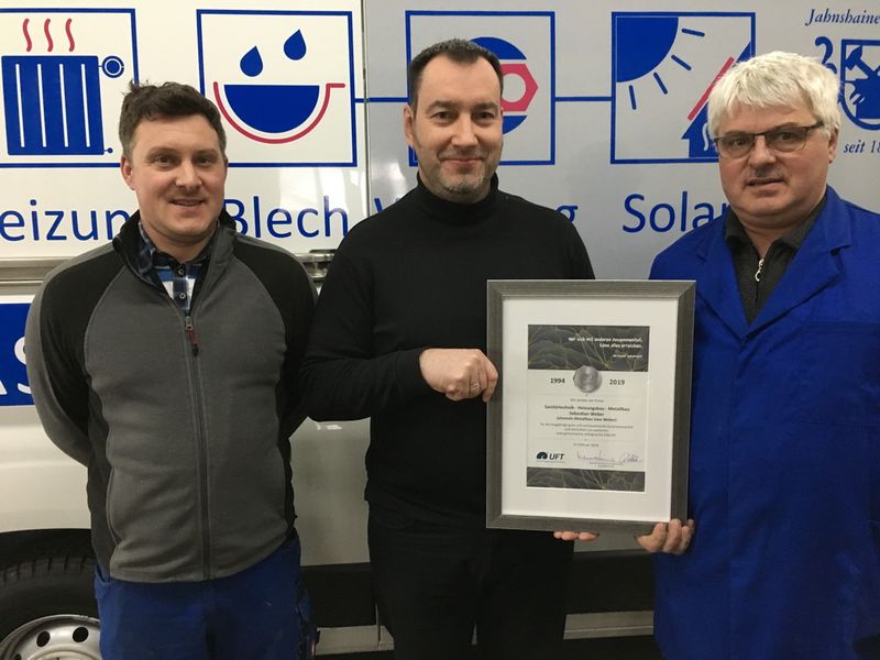 Am 17. Februar 2019 konnte der 25. Jahrestag der ersten Montage für UFT gefeiert werden. Die UFT-Geschäftsleitung und die Leitung der Zweigstelle in Sachsen bedanken sich bei Familie Weber für die langjährige Partnerschaft, Treue und erfolgreiche Zusammenarbeit.