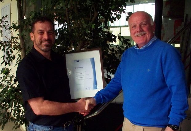 In einer kleinen Feierstunde dankte der Geschäftsführer Dipl.-Ing. Dieter Häußler dem Jubilar für seine langjährige Treue überreichte neben einer Anerkennung der Firma die Ehrenurkunde der IHK.