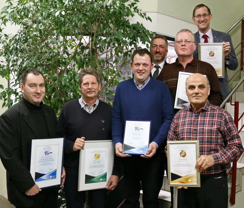 Der Geschäftsführer dankte den Jubilaren für ihre Zuverlässigkeit, ihre Treue und ihr engagiertes Wirken bei UFT und überreichte ihnen Urkunden und UFT-Ehrennadeln.