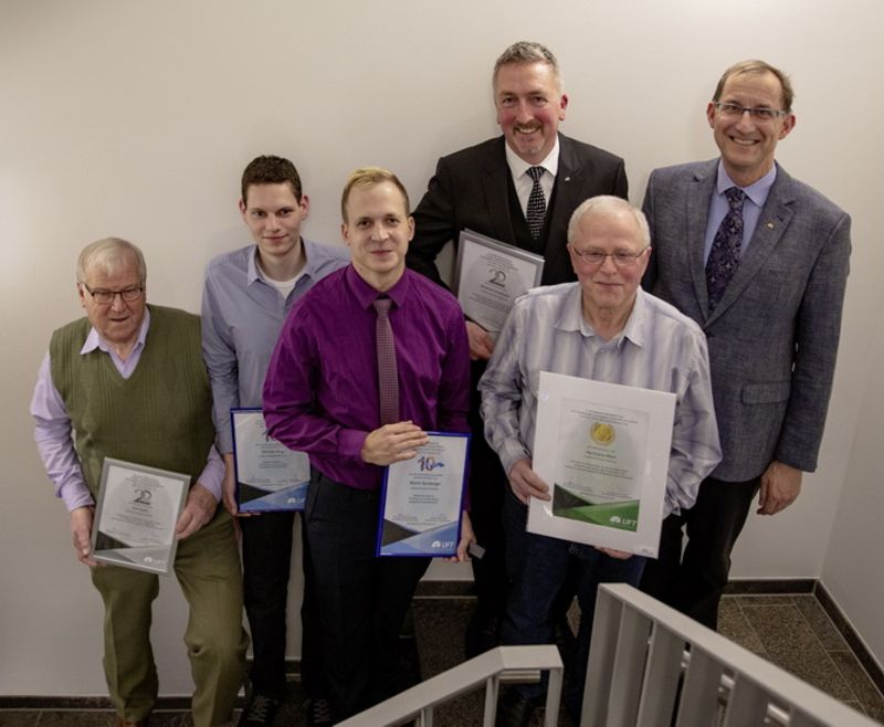 Dr. Weiß dankte den Jubilaren für ihre Treue, ihre Zuverlässigkeit sowie für ihr engagiertes Wirken bei UFT und überreichte ihnen Urkunden und UFT-Ehrennadeln.