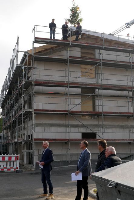 Die Mitarbeiterinnen und Mitarbeiter feierten das Richtfest zusammen mit den am Bau Beteiligten der Firmen Benninger (Hoch- und Tiefbau), Bauer (Zimmermannsarbeiten), Teufel (Blecharbeiten Dach), Metzger (E-Planung), mit dem Statiker Matthias Gölz und dem bauleitenden Architekten Jochen Elsner. Nach der Fertigstellung des Neubaus und dem Einzug der Abteilungen Verwaltung und Wissenschaftliche Dienste sowie der Geschäftsleitung sollen im kommenden Jahr in einem zweiten Bauabschnitt wichtige Umbauten im Altbau in Angriff genommen werden. „Wir dürfen uns auch auf eine neue Cafeteria mit ausreichend Platz für alle Mitarbeitenden und auf einen schönen Ausstellungsraum unterm Dach freuen“, betonte der UFT-Geschäftsführer Michael Drechsler bei seiner kurzen Ansprache. Mit dem Abschluss der Arbeiten und dem Einzug rechne man Mitte nächsten Jahres.